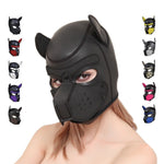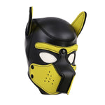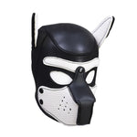 The body of this hood Is all black with black topstitching. Contrasting color brow, muzzle. and inner ears let you show off your unique puppy personality. The muzzle is removable so you can gnaw on that bone or grab a drink of water without ever leaving pup headspace.