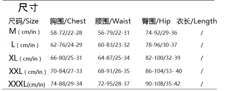 | size | chest(in.) | waist(in.) | hips(in.) |