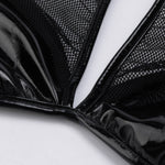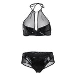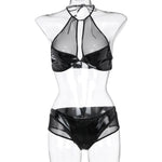 New Women Leather Lingerie Splice Hollow Bra with Brief Underwear Set Clubwear Sexy Lingerie Sexy Bra & Brief Sets Underwear
